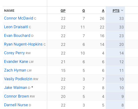 It’s not a perfect example, but you can see the scoring was more evenly dispersed among the Panthers roster. Even the best hockey player in the world (Connor McDavid) couldn’t outscore Florida’s depth, and that was pretty much the story of the series.