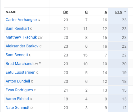 Take a look at the highest scoring 11 players through the playoff run that gave the Panthers their second straight Stanley Cup last season: